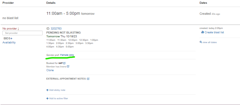 Gender preference is selected when the request is submitted but can be adjusted in CMS.