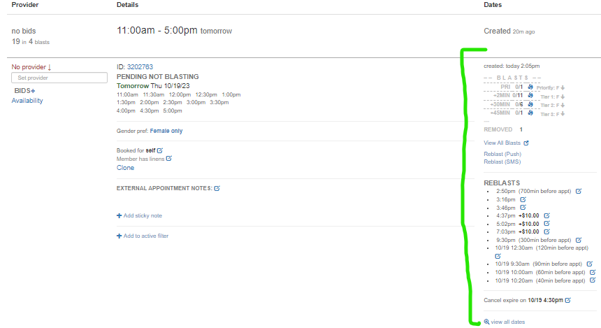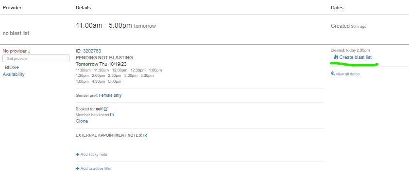 When a blast list is created or an appointment is reblasted, the providers will be notified in order of their tier according to the blasting logic. If we want to send the notification immediately, we need to click the blue flame next to the group.