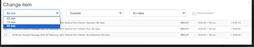 If you add one or more 5- or 15-minute extensions, they will appear beneath the initial duration summary and can be removed by clicking the “X” on the right.