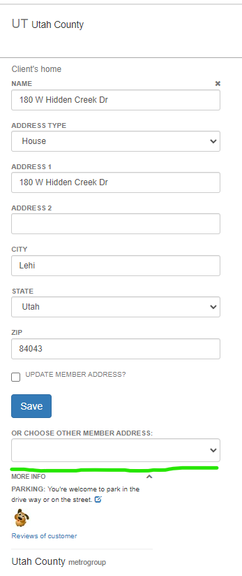 If switching to another saved address on the client’s file, this can be done at the bottom of the address change area.