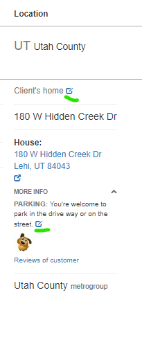 Parking instructions can also be added or modified using the same pen/notepad icon, located further down in the address section.