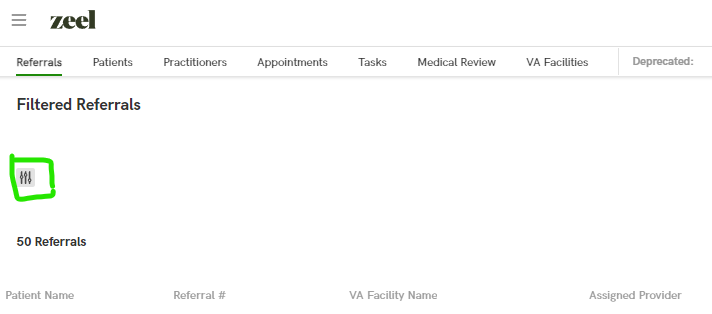 In order to look up information on a patient or referral in ZCC click the 3-slider bar icon to open the search menu.