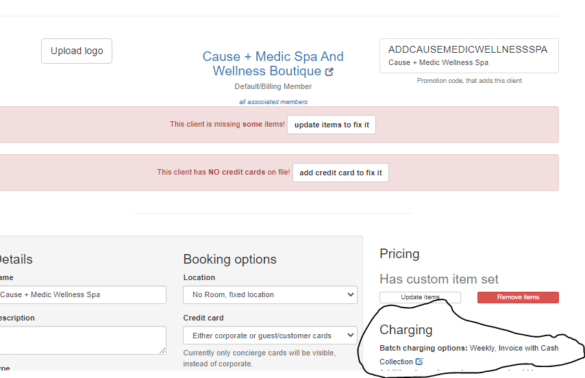 To view the spa’s current payment method, search for their billing member page in CMS. No escalation necessary.