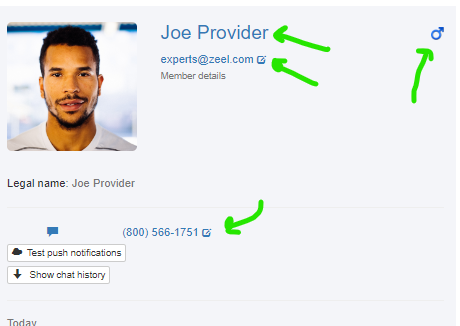 Provider Name, Phone number, Email and gender can be updated from their provider profile by clicking on the pen/notepad buttons or for Name/Gender the icon/name itself.